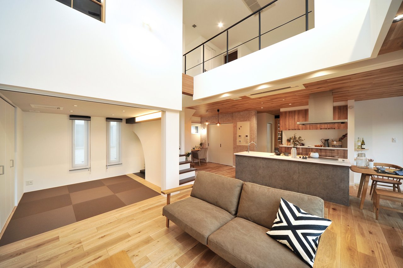 和の落ち着きと吹き抜けの開放感が心地良い家