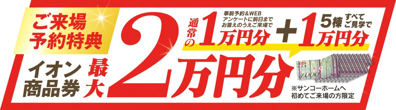 ※どちらの特典もサンコーホームへ初めてご来場の方限定
