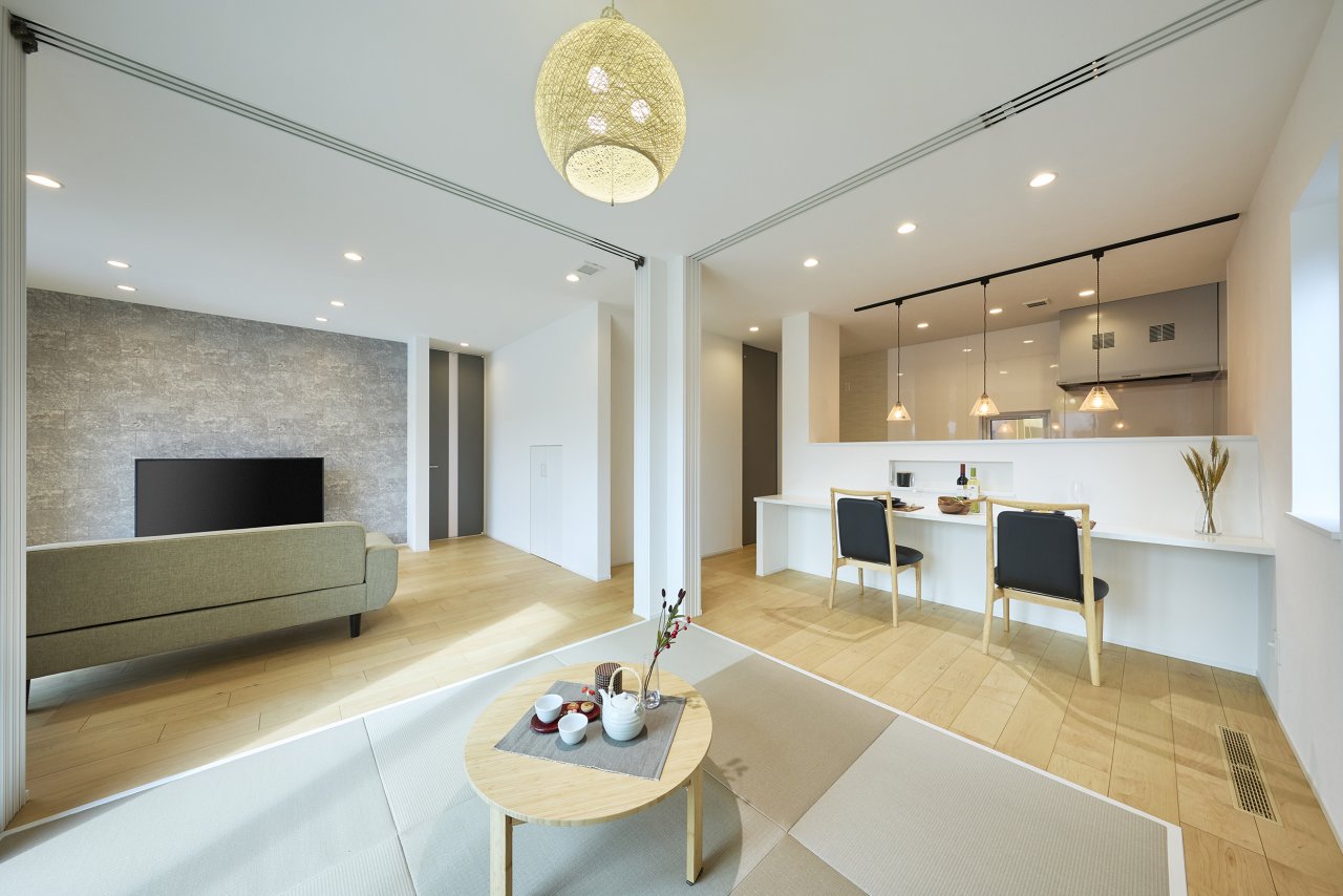◎キッチンとのコミュニケーションがはずむ対面造作カウンター
