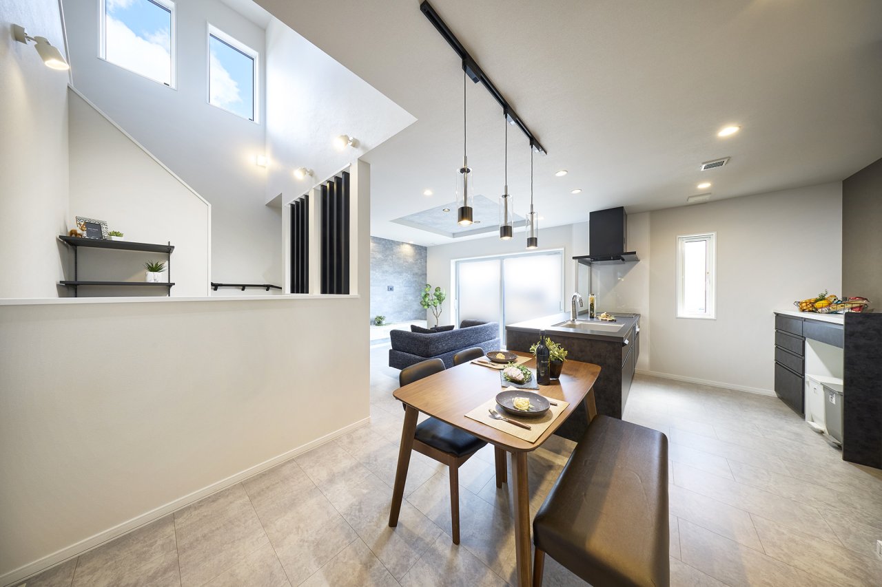 SNSで情報を集めたり、完成見学会に足を運んだりしながら、実際の住まいを見て参考にしました。見学会では、図面だけではわからない“坪数の広さ”を体感でき、暮らしのイメージがより具体的にふくらみました。担当営業の方や設計士さんからもたくさんアドバイスをいただき、リビングの天井を一部切り抜いて開放感をつくるという提案もそのひとつです。打ち合わせは毎回話がはずみ、とても楽しかったです。
