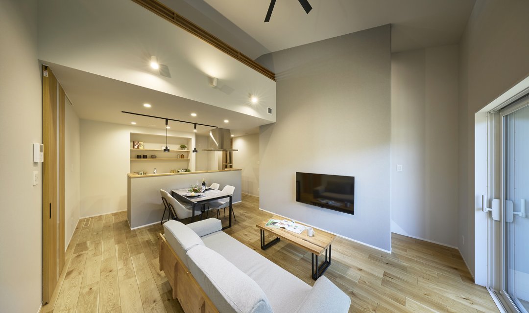 勾配天井で開放感のある広々としたLDK。
