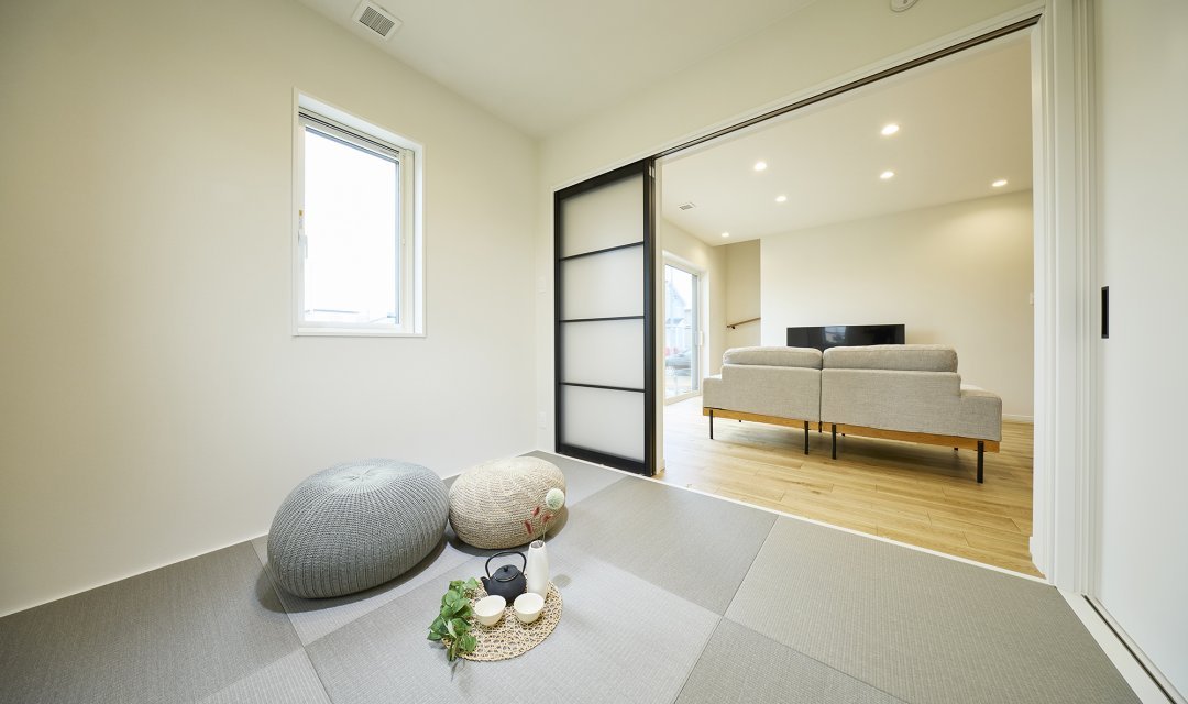 リビングとつなげて開放的に使用できる続き間和室。