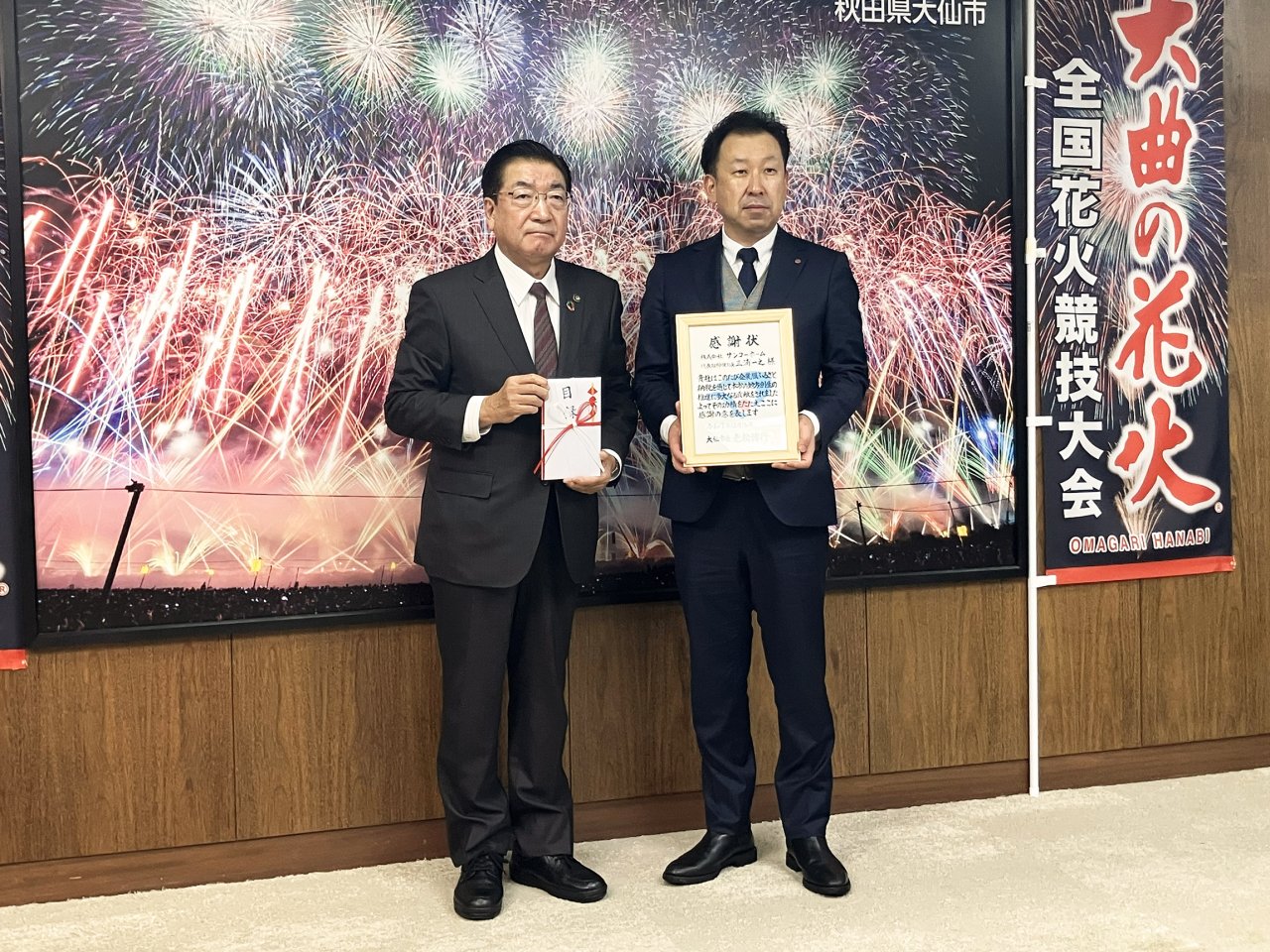 寄附に伴い、12 月16日大仙市にて贈呈式が行われました 。