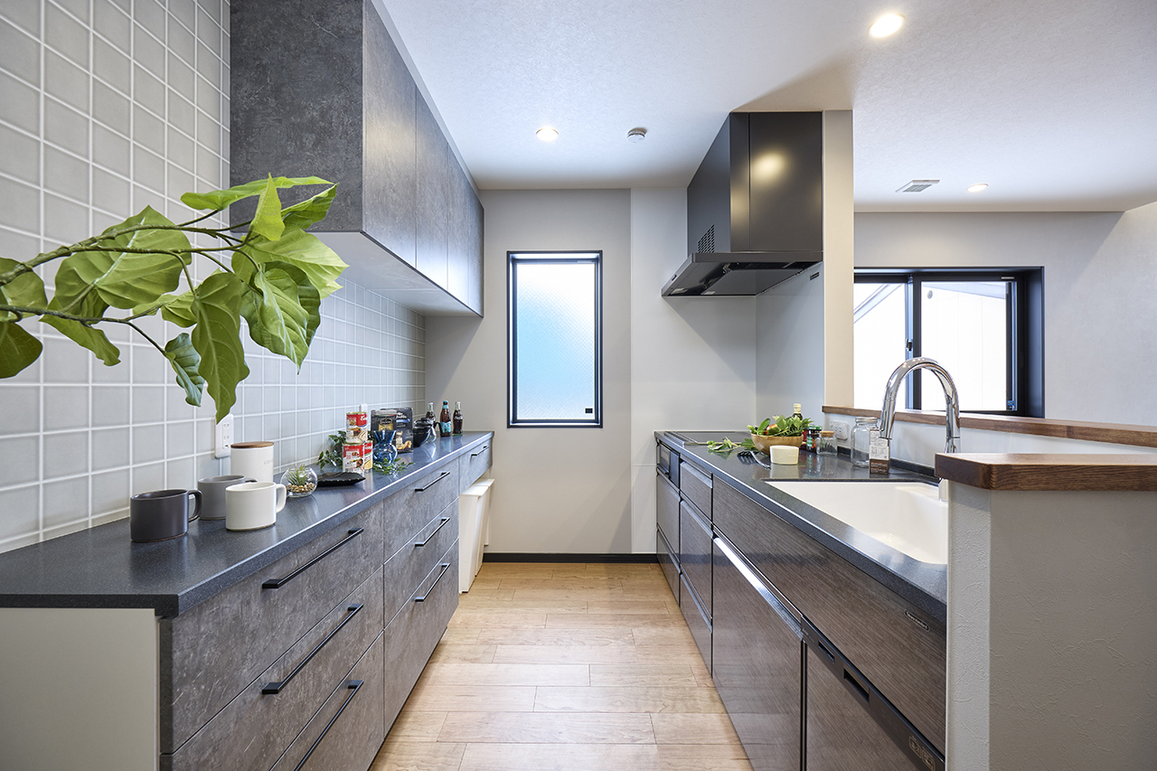 随所に取り入れたブラックカラーが空間を引き締めるこだわりのデザインの住まいです。